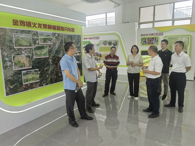 6月19日,云浮市郁南县科协主席林少玲带领广东郁南黄皮科技小院首席专家秦永华教授等一行,在罗定市科协有关领导陪同下,到金鸡镇、榃滨镇学习交流火龙果、肉桂产业发展经验。