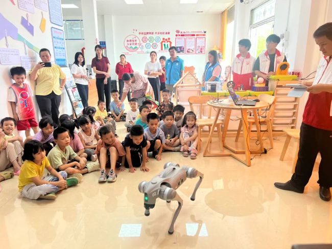 8月20日,云浮市郁南县科协科普志愿服务队到建城镇罗旁社区开展大篷车进社区志愿服务活动,为社区孩子们带去机器人、机器狗、机甲大师、手摇发电机等一系列科普展品体验。罗旁社区30多名孩子和家长参加了体验活动。