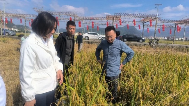 在兰寨村,郭涛教授参观了科技小院建设选址、周边环境配套,听取镇政府、县科协关于科技小院建设规划、选址、进度等工作情况汇报,并在专家团队、依托企业、共建单位多方协作共同发力,地方党委政府从政策倾斜、资金投入、人力保障等方面扶持作互动交流。同时,在切实发挥科技小院示范带动作用,发挥科技人才资源优势,聚焦产业需求导向,积极探索建立与农民利益联结机制,精准搭建平台,大力开展农技服务、农民培训、助农增收等方面作了交流探讨,达成了彰显特色、产业融合、联农带农等方面的科技小院建设共识。期间,郭涛教授还走进正在收割的稻田,认真查看水稻生长和收成情况,对今年因台风雨引起水稻细菌性条斑病和白叶枯病,未能及时喷药防治处理,造成水稻减产、失收提出了意见建议,并表示将在技术、种子上支持建设一个100亩的优质功能型水稻新品种示范基地。