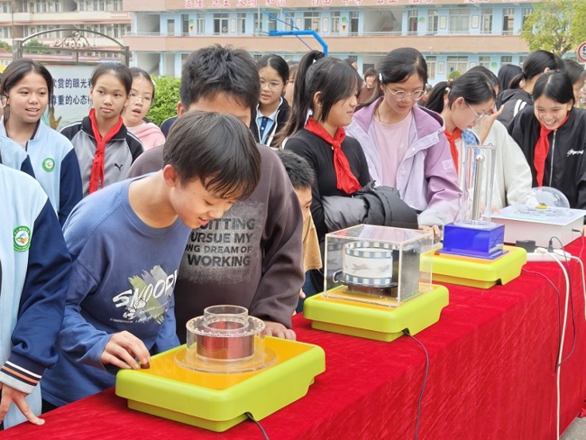 动手体验区里,各式各样的科学益智小玩具让同学们爱不释手。他们亲手组装、尝试,在“玩”的过程中观察物理现象,理解机械原理,在实践中体验到了探索与创造的乐趣。科学家精神展板以图文并茂的形式,系统展示了从基础科学到前沿科技的知识,成为同学们驻足学习的“露天课堂”,拓宽了他们的科学视野。