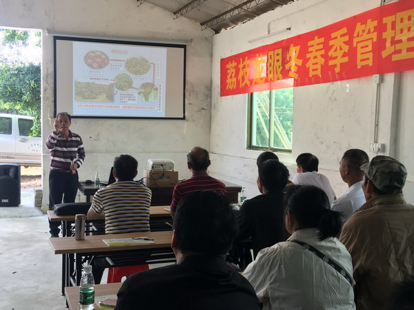 本次培训内容是荔枝冬春季管理技术和无人机植保管理系统。培训班上,王泽槐教授针对荔枝的生长结果习性以及环境气候条件的变化特点,在现有栽培技术的基础上,采用相对技术,灵活运用控梢促花措施,达到抑制冬梢,促进花芽分化,从而达到明年提高荔枝产量和质量,提高果农收入的目的。王教授的讲课图文并茂、深入简出,深受果农欢迎。