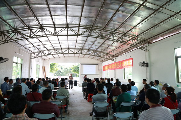 10月30日上午,为提高农民科学种养实用技术水平,阳江市科协联合阳西县荔枝龙眼协会在阳西县华翔果场内举办荔枝栽培实用技术培训班,邀请了华南农业大学、广东省荔枝龙眼科技协会会长王泽槐教授到现场讲课,附近果农和粤西片包括廉江、电白、广西等地荔枝种植大户共110多人参加了培训。
