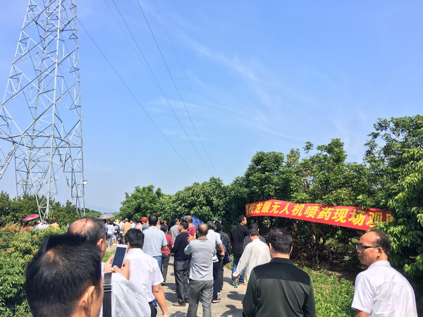 培训结束后,参加培训人员深入到果园,现场观摩无人机喷药。