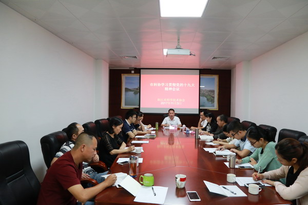 11月3日,阳江市科协机关以及下属单位市科技馆全体人员共同学习贯彻党的十九大精神。市科协主席郑辉印同志作了辅导报告,各部门负责人结合实际工作谈了深刻体会。