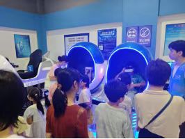 活动围绕“提升全民科学素质”核心目标,打造多元化特色体验区:“神奇的液氮”“火焰掌”等科学实验秀引发阵阵惊叹;中广核阳江核电有限公司搭建核电模型展区,以通俗讲解普及清洁能源知识、传递绿色低碳理念;机器人互动区供孩子亲手操控机器人,在趣味中感受科技魅力;趣味科学实验区通过“触电体验装置”“发电单车”等项目,让参与者直观感知电的科学原理;VR体验区的“VR过山车”“VR赛车”以逼真场景带来沉浸式感受;舞狮、川剧变脸、搂大头狗等传统项目穿插其间,实现传统与现代巧妙融合。