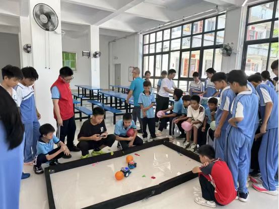 另一队则来到塘坪二中,将一批《中小学生科普读本》移交给该校负责人后,便启动了精彩的科普活动。首先进行的是水产领域科普讲座,水产养殖专家周爱国教授把原本枯燥难懂的水产养殖知识讲得生动有趣,教室里一片欢声笑语,提问声和讨论声交织在一起,格外热闹。讲座结束后,精彩震撼的科普实验秀和科普大篷车展品互动紧接着登场,学生们纷纷被吸引上前观看、体验,奇妙的科学现象引得他们发出阵阵欢呼,掌声不断;各种有趣的流动展品更让他们流连忘返。