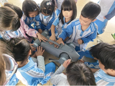当天上午,阳东金桂学校的活动大厅秒变“科技体验场”。机器狗化身“灵动伙伴”,在工作人员的操作下奔跑、跳跃、翻滚,甚至能对围观学生的挥手动作做出“回应”,现场尖叫声不断。