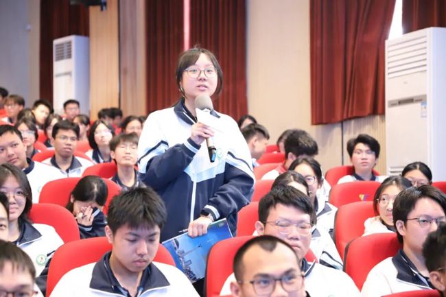 参会院士专家、领导共同触碰启动屏,宣布活动正式启动。杜如虚院士在主会场作了《时间之旅》主旨演讲,详细阐述人是怎样感受时间的,又怎样通过思辨飞越人生百年的禁锢,理解几近无穷的时间。精彩的演讲激发了同学们浓厚的兴趣,400名师生认真聆听。“221年后大撕裂之后,会形成新的星球?光子变成量子过程中,是否存在加速运动?...”在“小小问号,大大梦想——对话院士”环节,同学们踊跃提问,杜如虚院士耐心地一一解答,并赠送2位提问的同学亲笔签名的书。主会场同时邀请中国联通集团数智应用首席专家和杉杉博士带来《现代制造如何让工厂变聪明》的精彩讲座,以衣服制作流程为例,讲述现代制造业与传统制造业的区别,现代制造业有自动化设备、精准运输、效率更高、具有庞大的信息库等优势,可以解决传统制造业存在不够客观、准确和及时的问题。