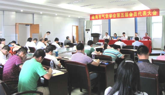 2013年9月10日上午,珠海市气象学会在珠海市气象局召开第五届会员代表大会。会上,市气象学会第四届理事长李叶新代表第四届理事会向大会作工作报告。大会进行了换届选举,产生了13名成员组成的新一届理事会。文敏当选为新一届理事会理事长。市科协副主席朱业龙出席会议并致辞。