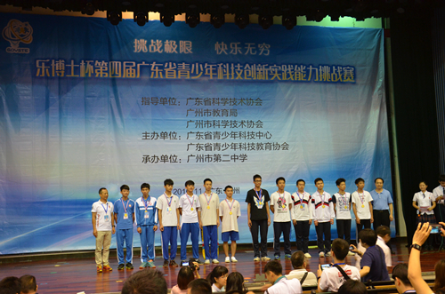 乐博士杯第四届广东省青少年科技创新实践能力挑战赛于11月18-19日在广州市第二中学举行,全省18市173支队伍约600名师生再次云集羊城,上演全国首创的动手动脑大挑战,赛场龙争虎斗,精彩纷呈。肇庆市派出16支参赛队伍,在本次比赛中斩获佳绩,共有1支队伍获得一等奖,3支队伍获得二等奖,13支队伍获得三等奖。