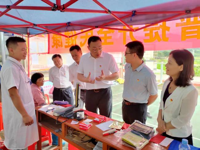 为深入贯彻落实全省、全市高质量发展大会精神,奋力开创肇庆城乡区域协调发展新局面,5月23日,肇庆市科协党组书记林晓东,党组成员、副主席孙志涯和胡爱兰一行到广宁县螺岗镇东方红村开展“科技服务助力乡村振兴 科普提升全民健康”活动。