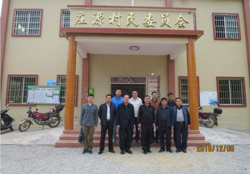 图4:帮扶专家和市科协领导,中山市驻庄源村扶贫工作组,五和镇、庄源村干部在村委大楼前合影留念