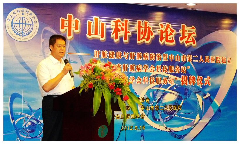 省肝脏病学会理事长李福山、中山市科协党组书记刘浩君等领导出席了揭牌仪式。同时,中山市医学会(中山市第二人民医院)科技服务站相继揭牌。并举行了《中山科协论坛——肝脏健康与肝脏病防治》。