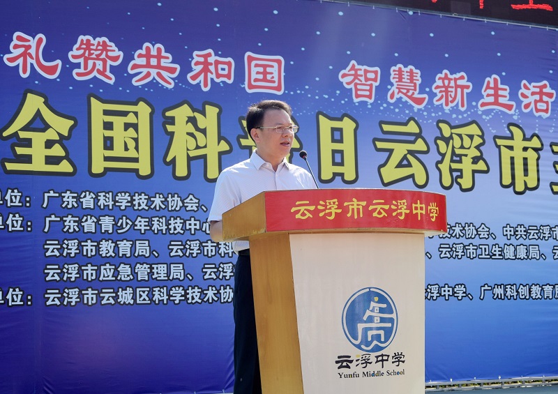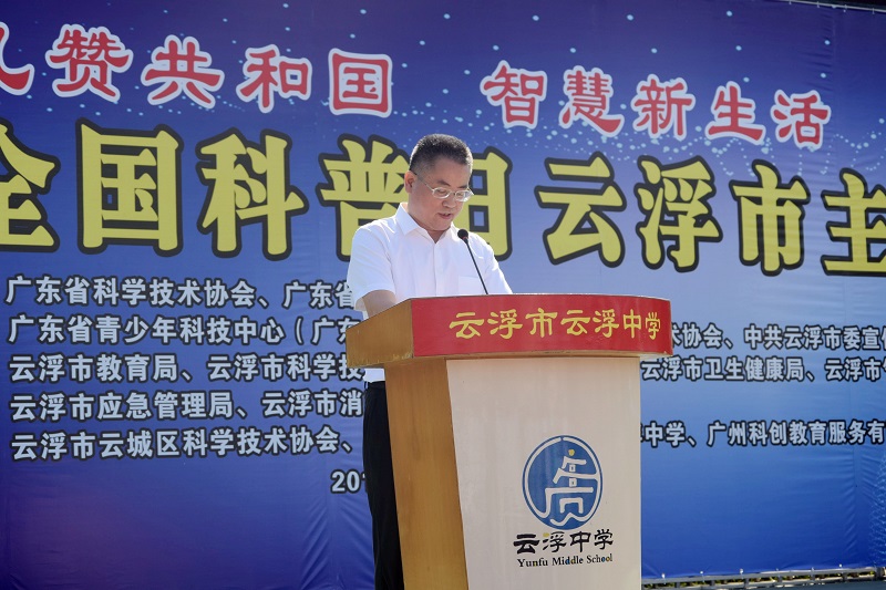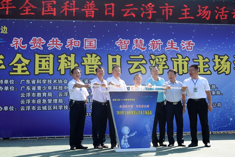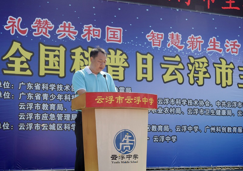 9月24日,云浮市科协联合广东省青少年科技中心(广东省科普中心)、市委宣传部、市教育局、市科技局、市农业农村局、市卫生健康局、市气象局、市应急管理局、市消防支队等单位,围绕“礼赞共和国,智慧新生活”主题,在云浮中学举办了2019年全国科普日云浮市主场活动。中国科学院院士、广州大学智能软件研究院张景中、省青少年科技中心(广东省科普中心)副主任陆朝光、云浮市科协副主席陈华坚、云城区人民政府副区长梁国锋以及各主办、承办、协办单位和相关部门的负责同志、科技教育专家、科普志愿者,新闻媒体记者,云浮中学的师生共4000多人参加了活动。