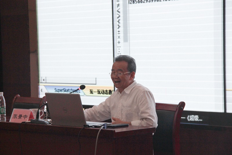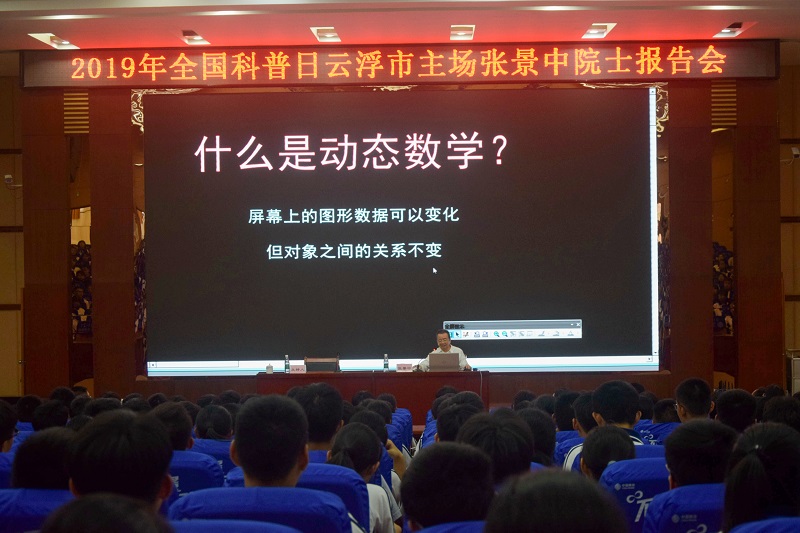 启动仪式结束后还举办了院士科普报告,中国科学院张景中院士为云浮中学高一学生作了“玩一玩动态数学”的科普报告。张院士从什么是动态数学,理想的动态数学环境,课程和技术整合的四个阶段,超级画板升级为网络画板,网络画板的特色等方面作了深入浅出的阐述。