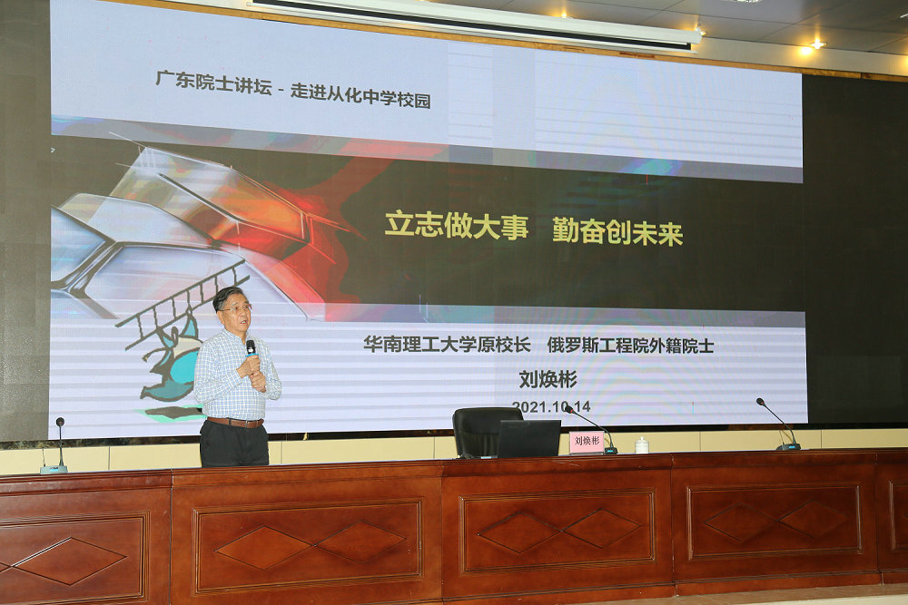 10月14日和18日,为深入学习贯彻习近平总书记在两院院士大会中国科协十大上重要讲话精神,省科协事业发展中心分别在从化中学、广州大学附属中学南沙实验学校组织开展院士讲坛活动,邀请俄罗斯工程院外籍院士、华南理工大学原校长刘焕彬教授为两所学校的高中学生作专题励志讲座,受到师生欢迎。