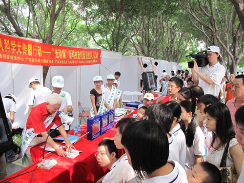 9月20日,广东省科协在禅城区惠景城举办“万人科学传播大行动”佛山分会场。活动以“节能减排,科学养生”为主题,广东省科普信息中心、广东省科普志愿者协会和禅城区科协组织了多家节能环保企业和部分“禅城区十佳科技人物”,以及高校教授和佛山市中医院的12名专家等在现场普及科学知识,派发科普资料,免费义诊和保健咨询等,积极服务大众,吸引了五千多位市民踊跃参加。省科协科普部副部长黄善辉、省科普信息中心郑文丰和禅城区科协领导周玉泉等出席了活动。