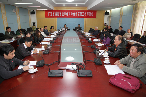 12月28日,省科协在广东科学馆召开了部分省级学会对外合作交流工作座谈会。33个省级学会的负责同志参加了会议。会上,省科协合作交流部部长郑德胜传达了中国科协2010年地方科协外事工作会议精神,并介绍了广东省科协对外合作交流工作的基本情况和2011年度对外科技合作交流工作计划;省科协合作交流部副部长谢洪重点就省科协2010年度国际会议资助办法实施情况和《广东省科协所属省级学会对外合作交流管理办法》征求意见的情况作了介绍说明;各省级学会的负责同志积极交流各自开展对外科技合作交流工作的经验和存在的问题,并提出了建议。
