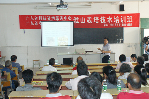 此外应龙门县其他种植产业需求,廖金才副研究员还前往蓝田乡开展淮山栽培技术培训,为当地农户现场解答各类种植难题,提高农户的种植水平,促进龙门淮山产业的健康快速发展。