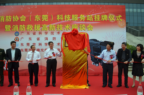 3月30日,广东省消防协会(东莞)科技服务站正式落户国家级高新区——东莞市松山湖科技产业园。据悉,该服务站依托东莞市天楠光电科技有限公司,旨在充分发挥学会组织桥梁作用,促进高等院校、科研院所与企业的产学研合作,促进科技成果向现实生产力转化,服务企业核心竞争力提升和东莞市消防事业发展。广东省科学技术协会党组成员、秘书长杨豪标,学会学术部部长钱春,东莞松山湖高新区党工委书记、管委会常务副主任刘宁,广东省消防协会会长苏志强,东莞市科学技术协会副主席李小兵等相关部门的领导出席了当天的揭牌仪式。