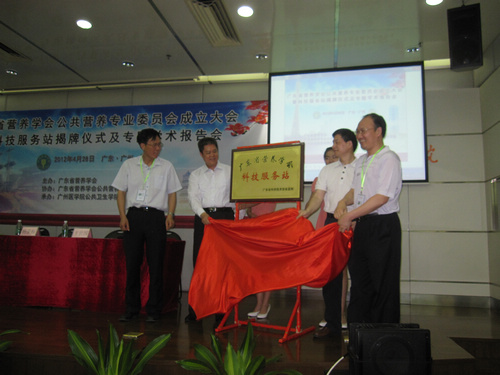 4月28日,广东省营养学会在广东医学院举行省营养学会公共营养专业委员会成立暨广州医学院科技服务站揭牌仪式。省科协党组成员、秘书长杨豪标同志出席并致辞。