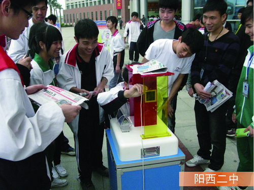 3月22日,广东科学馆科普大篷车开进了粤西山区阳西县,参加了阳江市举办的科技文化卫生三下乡科普集市,拉开了“科普大篷车山区行”的序幕。首站与阳西科技馆举行了“科普大篷车山区行”启动仪式暨“共建基地”揭牌仪式,随后在阳西县二中开展进校园等科普活动。3月31日,广东科学馆科普大篷车开进了肇庆市科技中心,与肇庆市科技中心举行“科普资料共建共享基地”揭牌仪式和科普游园活动,“流动科学馆”的车载展览、展品的丰富多彩,以及活动的组织和互动的精彩表演,为当地科普活动的开展起到了示范作用。