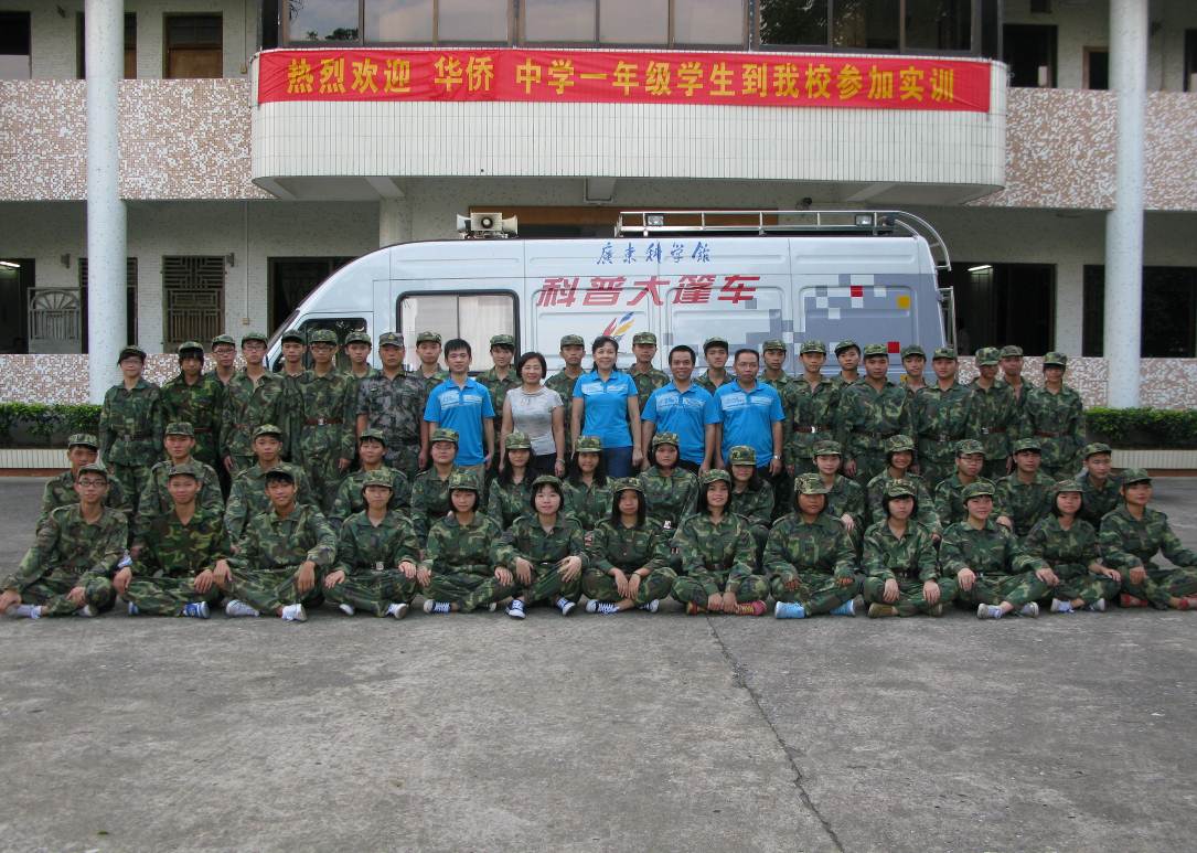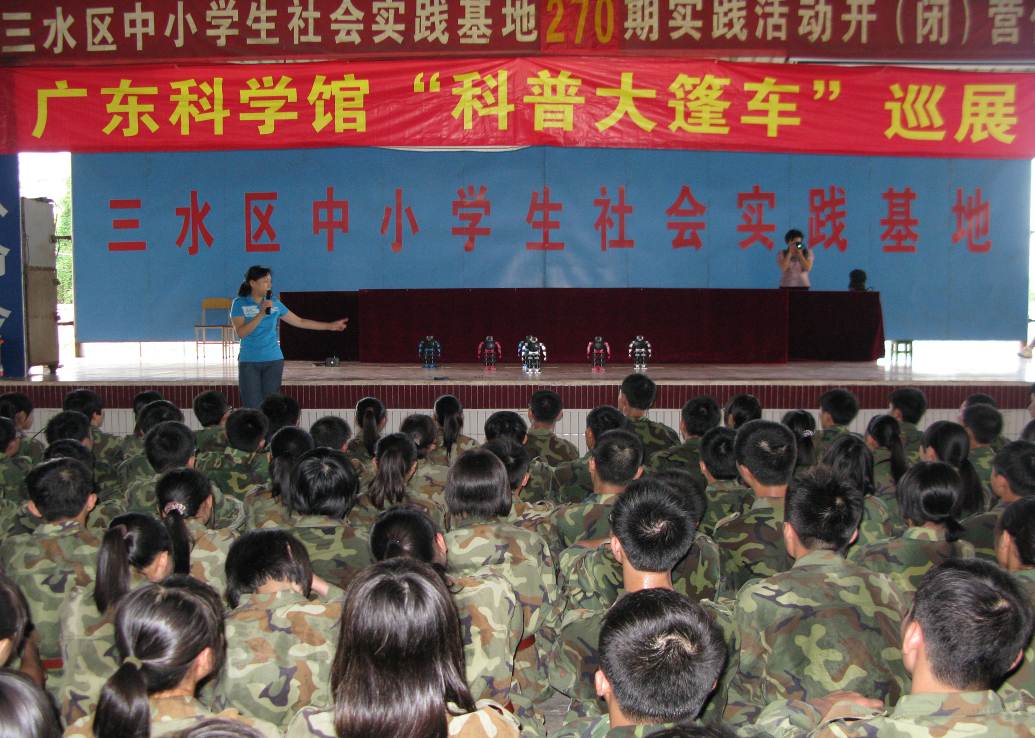 新学年伊始,广东科学馆科普大篷车(流动科技馆)驶进了佛山市三水区中小学生社会实践基地,为正在参加实训活动的学生们送上一顿丰盛的科普大餐,丰富了他们的军训生活。
