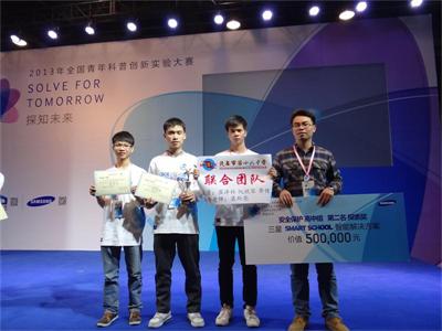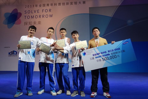茂名市第十六中学的“联合团队”和肇庆中学的“金刚队”在广州赛区(复赛)过关斩将,分获前2名顺利晋级全国总决赛。最后,在全国10支高中组参赛队伍中,脱颖而出,双双获奖。茂名市第十六中学喜获亚军,赢取探索大奖,肇庆中学勇夺第三名,两所中学都各自获赠价值50万元的三星Smart School智能解决方案设备一套。