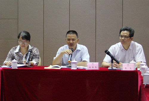 省科协党组成员、副主席吴焕泉(中)在会议上讲话(佛山市高明区科协 供图)