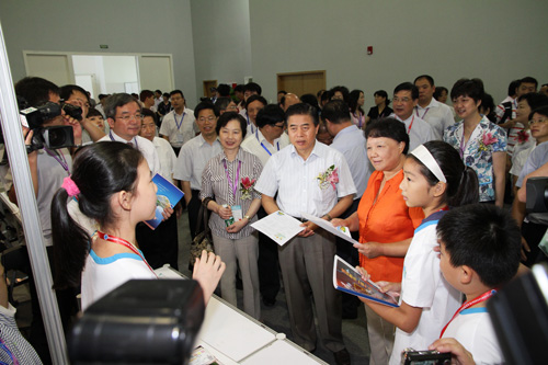 8月9日,由中国科协、教育部、科学技术部、国家发展改革委、环境保护部、国家体育总局、共青团中央、全国妇联、国家自然科学基金委员会、广东省人民政府共同主办的第25届全国青少年科技创新大赛在广州市广东科学中心隆重开幕。中国科协常务副主席、党组书记、书记处第一书记邓楠,广东省委副书记、省长黄华华,国家教育部副部长陈小娅,团中央书记处书记罗梅,广东省副省长宋海等主办单位的领导、嘉宾出席了开幕式。