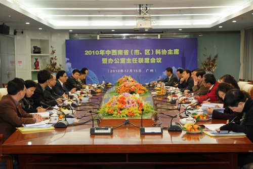 12月15日,2010年中西南省(市、区)科协主席暨办公室主任联席会议在广州召开。来自河南、湖北、湖南、广西、海南、四川、贵州、云南、广东等省(市、区)科协主席及办公室主任出席了会议。