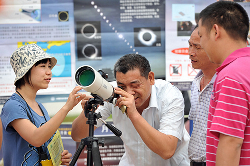 活动中,广东省青少年科技中心带来的太阳能能量转换模型,以及天文望远镜等,同样吸引了大批市民特别是青少年学生的关注。不少市民均走到天文望远镜前模拟观察天体,同时在工作人员的介绍下了解日食、月食以及88星座等知识。
