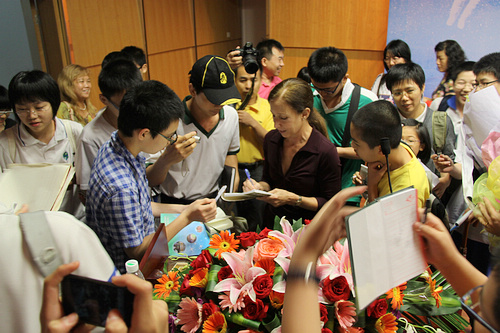 当天活动现场掌声不断,而整场报告会的高潮则是艾文斯女士向听众展示的其在太空飞行时拍下的地球美景,特别是当大屏幕上放映出北京、广州的图片时,现场响起雷鸣般的掌声。半个多小时的活动互动环节一再延长,现场听众踊跃提问,艾文斯女士也耐心认真地回答,但仍有大批听众因无法提问而颇感遗憾。会后,许多听众驻留会场不肯离去,簇拥着艾文斯女士合影,分外珍惜这难得的与宇航员交流的机会。