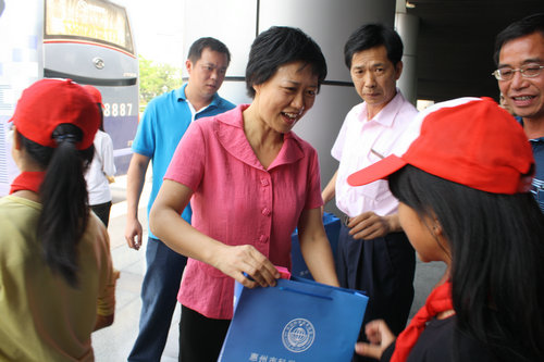惠州市科协黄细花主席向小朋友们赠送节日礼物
