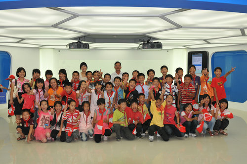 小朋友们在惠州移动“智惠方舟”综合信息化体验馆合影