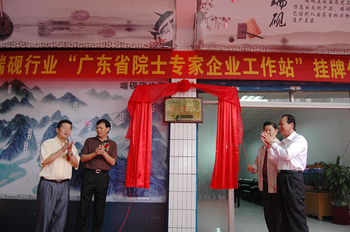 在此背景下,在广东省科协、肇庆市科协指导下,端州区区科协自2010年10月起开展调研考察,积极做好端砚“广东省院士专家企业工作站”筹建工作。2011年10月9日,以“肇庆端砚研究所”为依托建立“广东省院士专家企业工作站”获得省科协批准,以谢先德院士和中国科学院广州地球化学研究所王辅亚教授、王春云博士等专家组成的技术团队将依托工作站,指导端砚产业创新发展。至此,端砚产业发展迎来了资深的团队顾问,科学技术力量与文化品牌之间的融合迈出了重要一步。