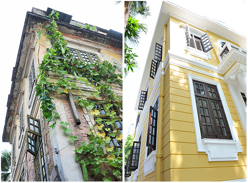 修缮前与修缮后外墙面对比