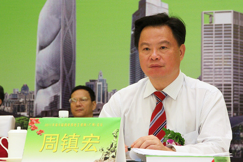 周镇宏在论坛开幕式上作了重要讲话。他首先代表省委省政府对前来参会的海峡两岸工程界专家学者表示热烈的欢迎。他在致辞中回顾了广东改革开放以来与港澳台合作交流的历程,认为粤港澳台四地人缘相亲,文渊相承,风俗相通,彼此间的发展既紧密相联,也各具特色,具有较强的互补性,具有深厚的合作基础和广泛的前景。改革开放以来,四地交流互动不断深化,合作领域不断拓展,为促进中华民族的伟大复兴做出了积极贡献。他强调,当前粤港澳台合作正处在新历史起点。近年,海峡两岸四地在联合实施《珠江三角地区改革发展规划纲要》和《海峡两岸经济合作框架协议》的带动下合作进一步深化,合作已由单纯的经贸联动,走向全方位的、更高层次的合作迈进。他认为,粤港澳台进一步深化合作需要粤港澳台四地的专家学者广泛参与。“两岸四地工程师论坛”为粤港澳台工程科技界互动交流提供了一个良好的平台,希望两岸专家学者通过本届论坛为海峡两岸打造世界级都会区提出真知灼见,为广东今后发展献谋献策。他表示,广东的发展离不开港澳台的支持,广东人民愿意与港澳台同胞一起,抢抓机遇,深入落实海峡两岸经济合作框架协议、粤港和粤澳合作框架协议,继续深化粤港澳台经贸、科技、文化、旅游和教育等领域的交流与合作,促进四地互利共赢,使四地业界和民众得到更多的实惠,推动四地合作向纵深发展。最后他诚挚希望港澳台同胞多来广东走走,进一步凝聚合作共识,增强发展合力,携手共创更美好的明天。