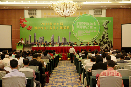“第9届两岸四地工程师论坛”2011年11月18~19日在广州举办。论坛由广东省科学技术协会、(台湾)中华土木技师公会联合会、香港工程师学会、澳门工程师学会、福建省科学技术协会、福建省土木建筑学会、台湾中华两岸经贸投资协会和广东省土木建筑学会等联合主办。来自粤港澳台闽250多名专家学者共聚一堂,围绕论坛主题“构建幸福城市,共享绿色生活”,共同探讨海峡两岸共同关心的城市建设问题。中国工程院院士容柏生、周福霖、吴硕贤等我省著名建筑专家参加论坛。省委省政府对论坛举办十分重视,中共广东省委常委、统战部部长周镇宏、省人大副主任王宁生以及广东省有关部门领导到会。