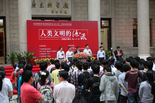 11月18日,在广东省科协成立50周年之际,由省科协、省直机关工委、省科技厅、省宋庆龄基金会主办,广东科学馆、珠江文化研究会科技文化专业委员会承办的“人类文明的源与流”大型科技文化展览在广东科学馆隆重开幕。