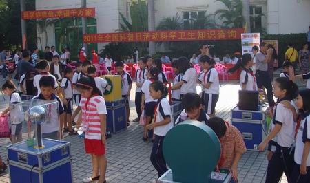 今年5月,在第十一届广东省青少年机器人竞赛上,惠城区有5所学校7支队伍参加中小学组的竞赛,荣获了2项一等奖,2项二等奖,3项三等奖的优良成绩,今年7月,在河南省郑州市举行的第十一届全国青少年机器人竞赛上,惠城区的河南岸中学竞赛队获得了金牌,市九中竞赛队获得了银牌,取得了近年来参赛的最佳成绩;在2010年创建6所区级青少年科学教育特色学的基础上,今年再次创建了高标准、有特色和有示范带动作用的区级青少年科学教育特色学校17所,目前,惠城区有区级青少年科学教育特色学校23所。同时,麦地小学、东江小学、市五中等3所学校被评为惠州市青少年科学教育特色学校,东江小学还获评广东省青少年科学教育特色学校。11月上旬,从全区各中小学校中选派了15所青少年科学教育特色学校或项目设计学校共20个队参加中央电视台少儿频道《芝麻开门》栏目在惠州市拍摄酷玩假期“青少年趣味科学对抗赛”节目,在10个节目的拍摄竞技活动中惠城区学校队获得了7个第一名的优异成绩。该节目于11月29日起在中央电视台少儿频道《芝麻开门》栏目播放。