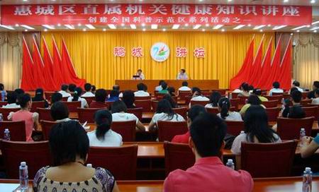 惠城区通过举办以“节约能源、保护环境”、安全生产知识、“低碳生活,从我做起”科普知识图片展,提高区直各单位干部职工的科学素质。日本核灾难发生后,针对一些市民抢购碘盐现象,及时编印了《买碘盐防辐射毫无意义》宣传彩页,免费派发给区直各单位干部职工,受到了广大干部职工的好评,起到了很好的宣传效果。通过编发《惠城区科普工作巡礼》、惠城区社区(村)科普学校系列读本给各级领导和机关干部职工,掀起了学科学的读书高潮。