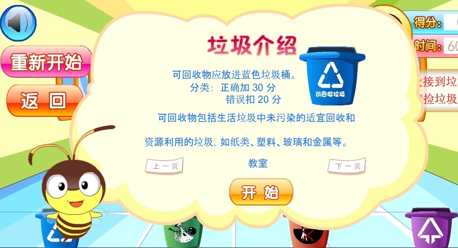 《垃圾分类科普动漫游戏》是一款模拟生活场景的科普动漫游戏,旨在倡导公众在学校、家庭、公园等场所自觉进行垃圾分类的理念,以轻松活泼、寓教于乐地方式更好地推进垃圾分类知识的普及,为保护我们赖以生存的地球环境贡献一份力量。目前已通过省科普志愿者协会、省科普信息中心开展的“垃圾分类从我做起”系列科普活动等方式,走进了社区、学校、家庭中,深受青少年和社区居民的欢迎。