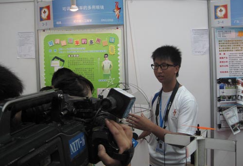 佛山市禅城区东鄱小学苏思元同学在为中国科学院黎乐明院士介绍项目