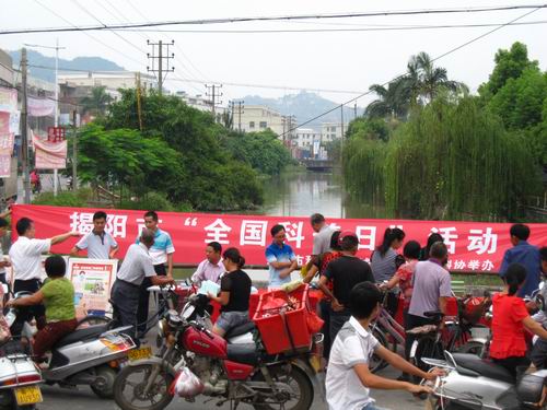 由揭阳市科协、榕城区科技局、榕城区科协主办的揭阳市2012年全国科普日活动,9月18日上午在仙桥古溪市场举行启动仪式。