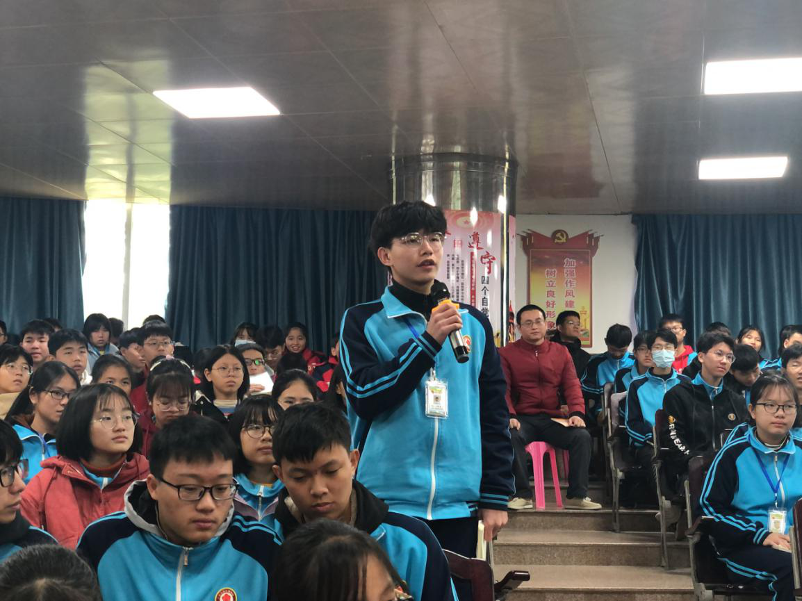 在广宁中学,邓稼先妻侄许进讲述了姑爹邓稼先为中国核武器奉献一生的感人事迹。他希望同学们明白:为谁读书?为什么读书?向谁学习?学习什么?