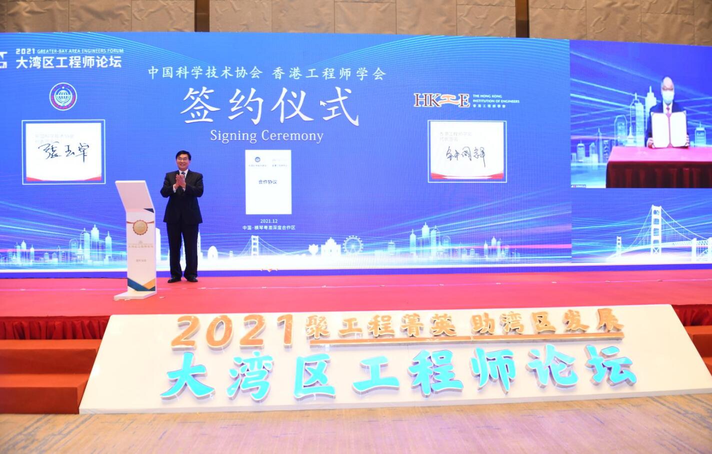 论坛现场,中国科协与香港工程师学会签约