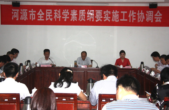 5月15日,河源市全民科学素质纲要实施工作协调会在市委党校召开。会议学习贯彻了国家、广东省全民科学素质纲要实施工作会议精神,研究部署了2013年全民科学素质纲要实施工作。按照中国科协、省科协的要求,河源市将全面启动各县区全民科学素质纲要实施督查工作。