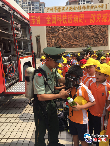 省科协党组书记、常务副主席何真在接受记者参加活动的学生们在消防员的指引下体验消防器械。采访时指出,通过主场活动的示范和引领,全省科协统一部署、上下联动,社会广泛参与,广东省科协组织广大科技工作者和科普志愿者深入学校和社区,广泛开展科普宣传和防灾减灾宣传教育活动,普及科学知识,进一步唤醒公众科学防灾、应急避险意识,在全社会营造崇尚科学文明的良好风尚。