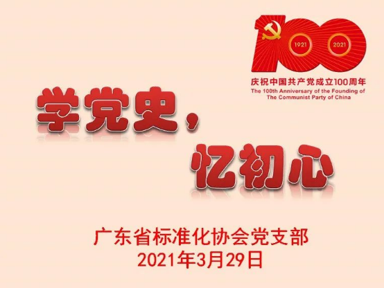 3月29日,在迎接中国共产党百年华诞之际,广东省标准化协会党支部召开党史专题学习(扩大)会,传达学习中共中央印发《关于在全党开展党史学习教育的通知》精神,深入学习贯彻落实习近平总书记在党史学习教育动员大会上的重要讲话精神。